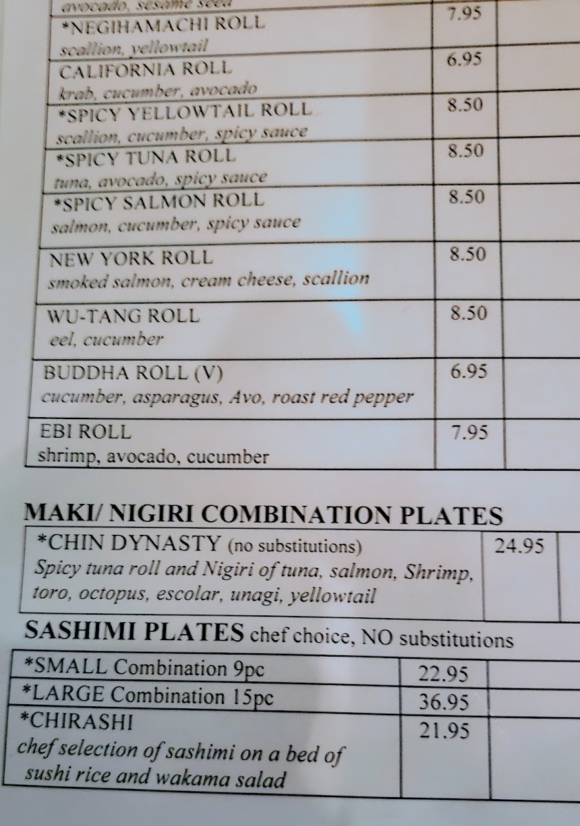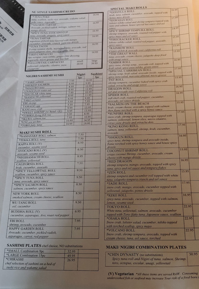 The menu supports a range of dining needs, from casual quick orders to more relaxed meals, providing flexibility throughout the day. It is suitable for those seeking Asian fusion flavors with a focus on fresh sushi, noodles, and traditional Chinese and Thai dishes.